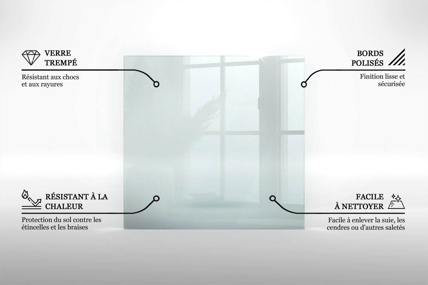 Grâce à son design sobre et raffiné, cette plaque s’intègre harmonieusement dans tous les styles de décoration, du rustique au contemporain. Elle devient un véritable élément de mise en valeur pour votre poêle ou cheminée, apportant une touche de modernité et de clarté à la pièce. Imaginez votre salon transformé, où fonctionnalité rime avec esthétique, et où chaque détail reflète votre goût pour les belles choses. N’attendez plus pour ajouter cette touche finale à votre intérieur : optez pour la Plaque de sol en verre pour poêle, un choix sûr, pratique et résolument élégant.