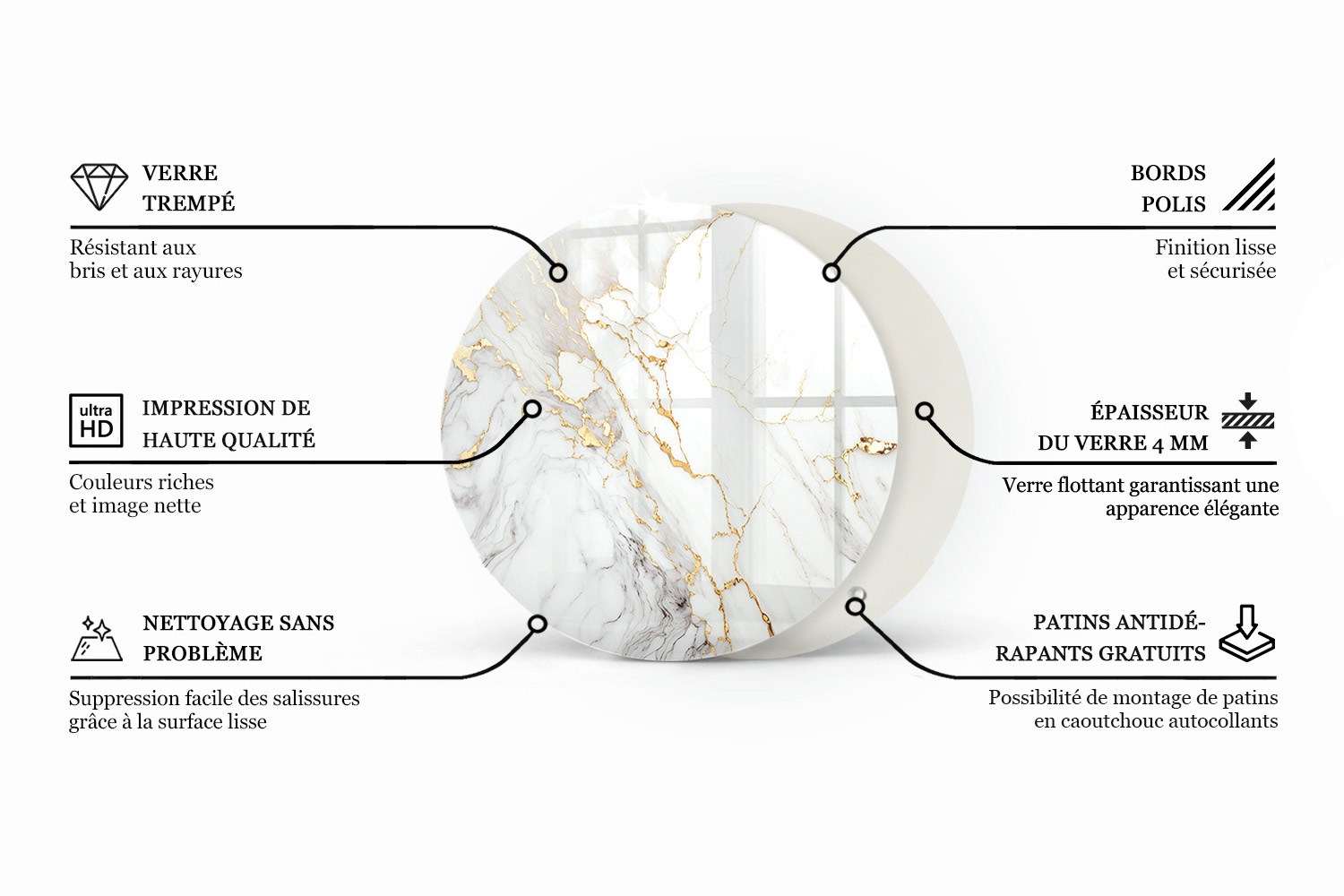 Apportez une touche design à votre intérieur avec un plateau de table rond en verre imprimé du motif De subtiles veines de marbre. Ce plateau en verre allie forme moderne et expression décorative. C'est un détail élégant qui attire le regard et brise la monotonie. Le plateau rond pour table De subtiles veines de marbre est parfait comme plateau table basse, table à manger élégante ou protection artistique. Fabriqué en verre trempé, il résiste aux chocs et à la chaleur. Qu'il soit utilisé à l'intérieur ou comme plateau table extérieur, son imprimé lui donne un caractère unique. Si vous cherchez plus que de la fonctionnalité, ce plateau de verre pour table est le choix idéal.